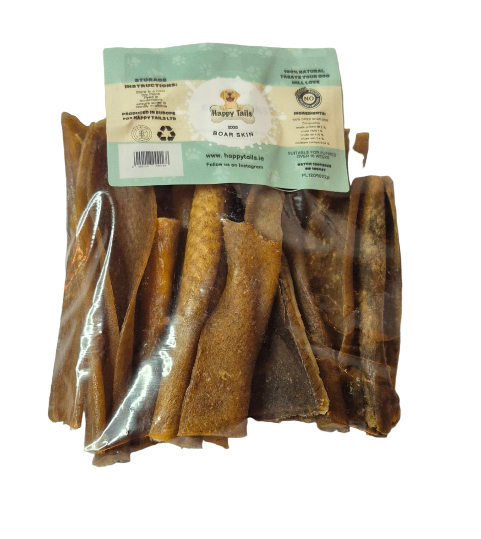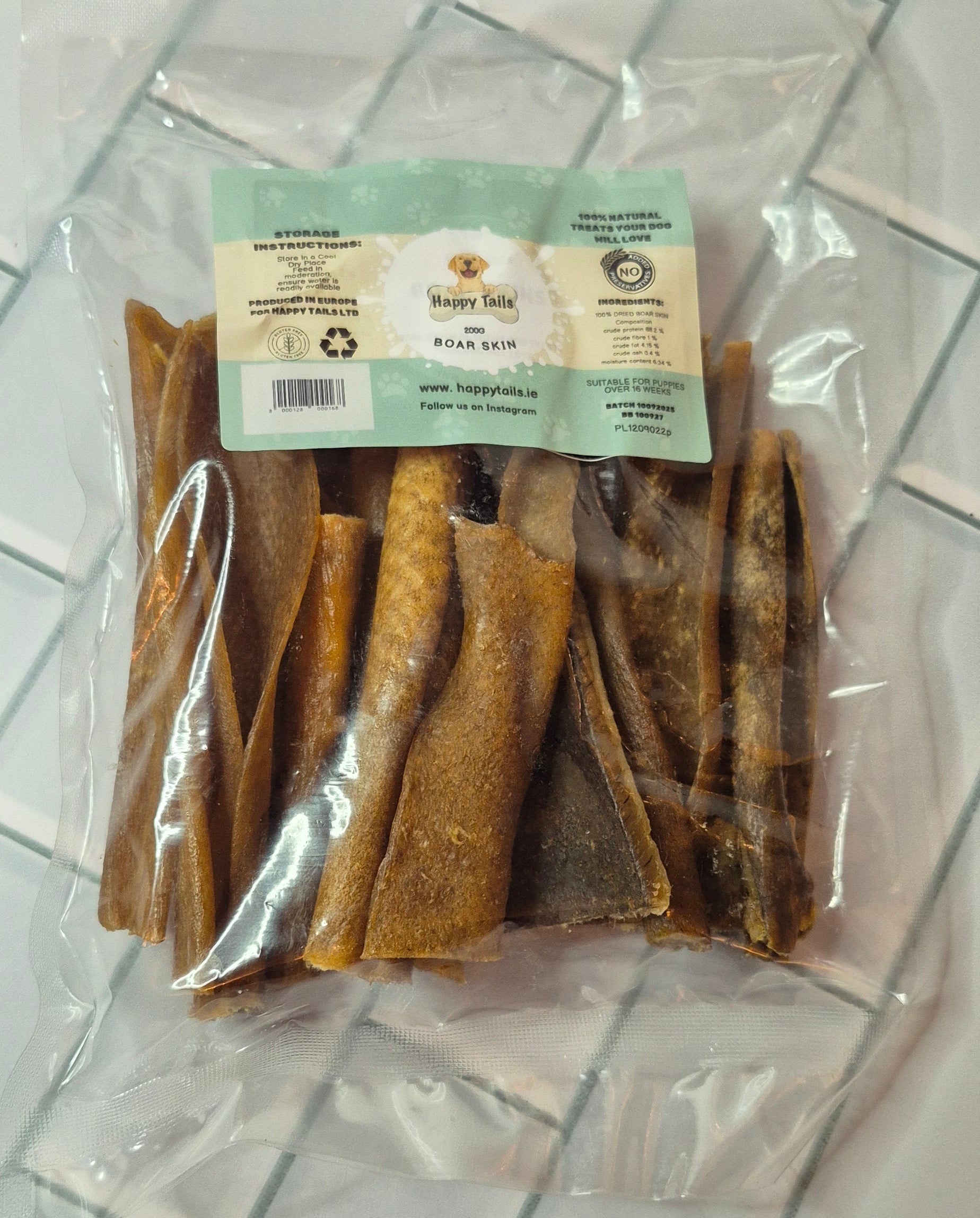 Boar Skin Chews are natural, healthy chew treats for dogs. Air dried to keep all of their nutritious goodness and delicious taste. Long Lasting rich chew .